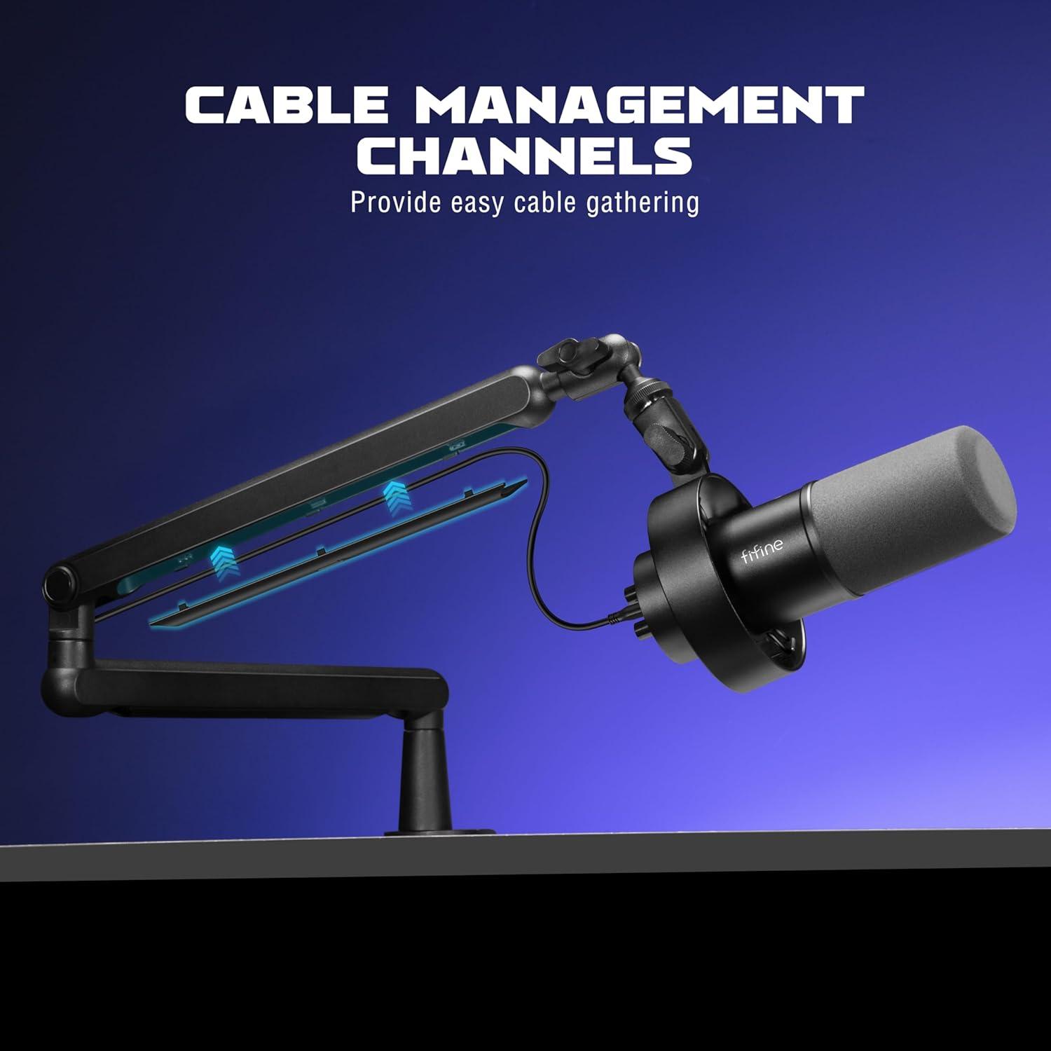 Cable Management and Fully Adjustment-The boom stand is equipped with cable managements in hiddenness to organize your microphone cables. Neat arrangement of cable will not cause excessive pulling or resulting in unexpected use. Suspension arm stand can be extended to 29 inches, suitable for your long large office desktop.