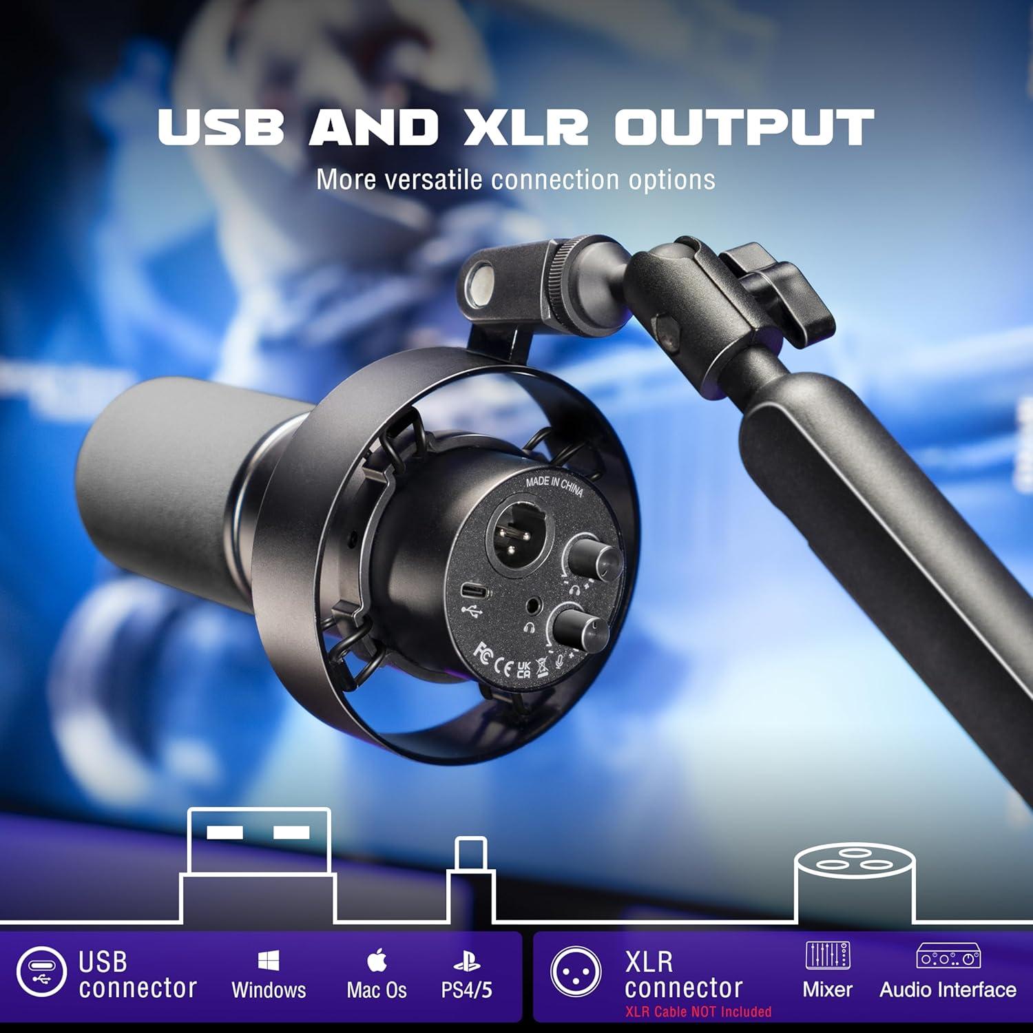 XLR/USB Dual Output-Provided with both USB and XLR connections, the USB dynamic microphone pack for PC is a significant benefit for you to podcast in various ways. XLR interface enhances the sense of audio space for immersive podcast audio. Use the vocal microphone with sound card or mixer equipment accessories in your studio to present more natural and high-end audio. (XLR Cable NOT Included)