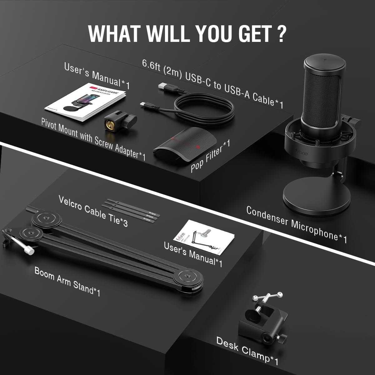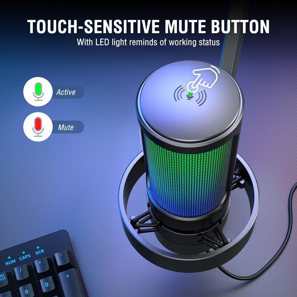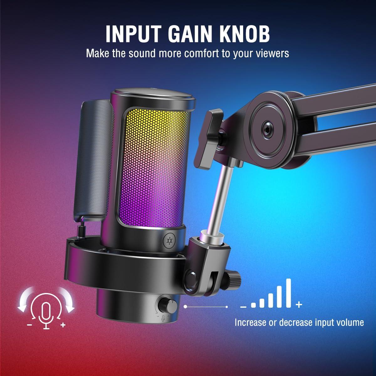 [Various and Controllable RGB] Three lighting modes on the fifine USB microphone show you up to 9 kinds of RGB light colors. Worked with RGB stream mic, the RGB control button gives you an easy way to select mode or color to make a difference for game scenes. Aesthetic of the gaming microphone for PC works well to your gamer setup or LED equipment to present pop and visual pleasant.