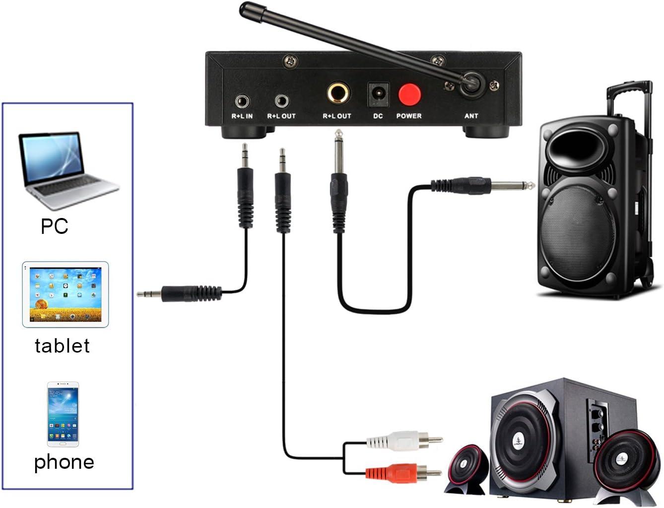 Adjustable echo effect. Allowed to mix the mic signal with music signal without using an mixer. Compact metal receiver, has stronger interference prevention ability than plastic ones. This wireless microphone system can deliver space at home and be portable for on the go use.