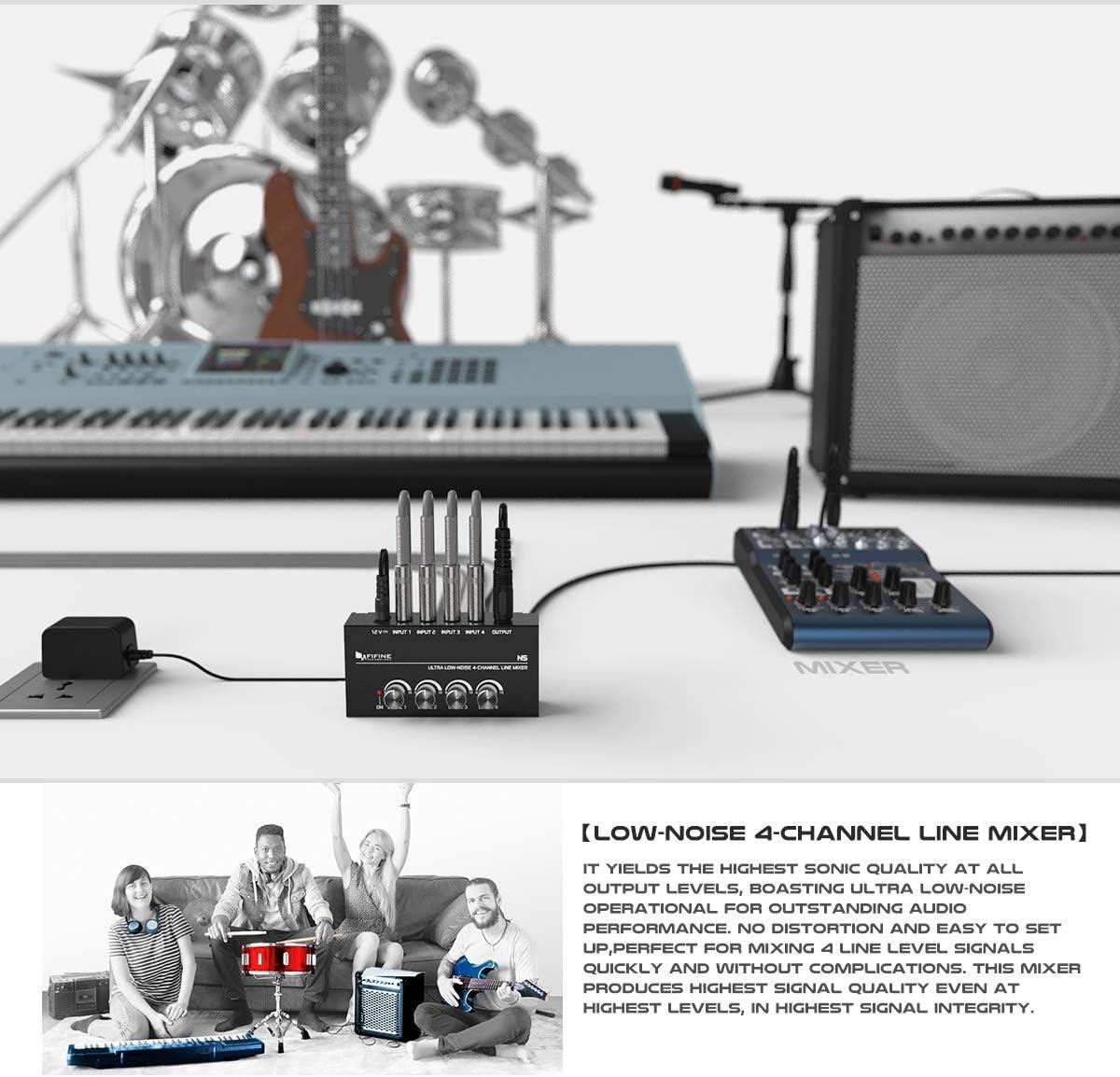 【Low-Noise 4-Channel Line Mixer】 Mini audio mixer yields the highest sonic quality at all output levels, boasting ultra low-noise operational for outstanding audio performance. No distortion and easy to set up, perfect for mixing 4 line level signals quickly and without complications. 4-Channel mixer produces highest signal quality even at highest levels, in highest signal integrity.