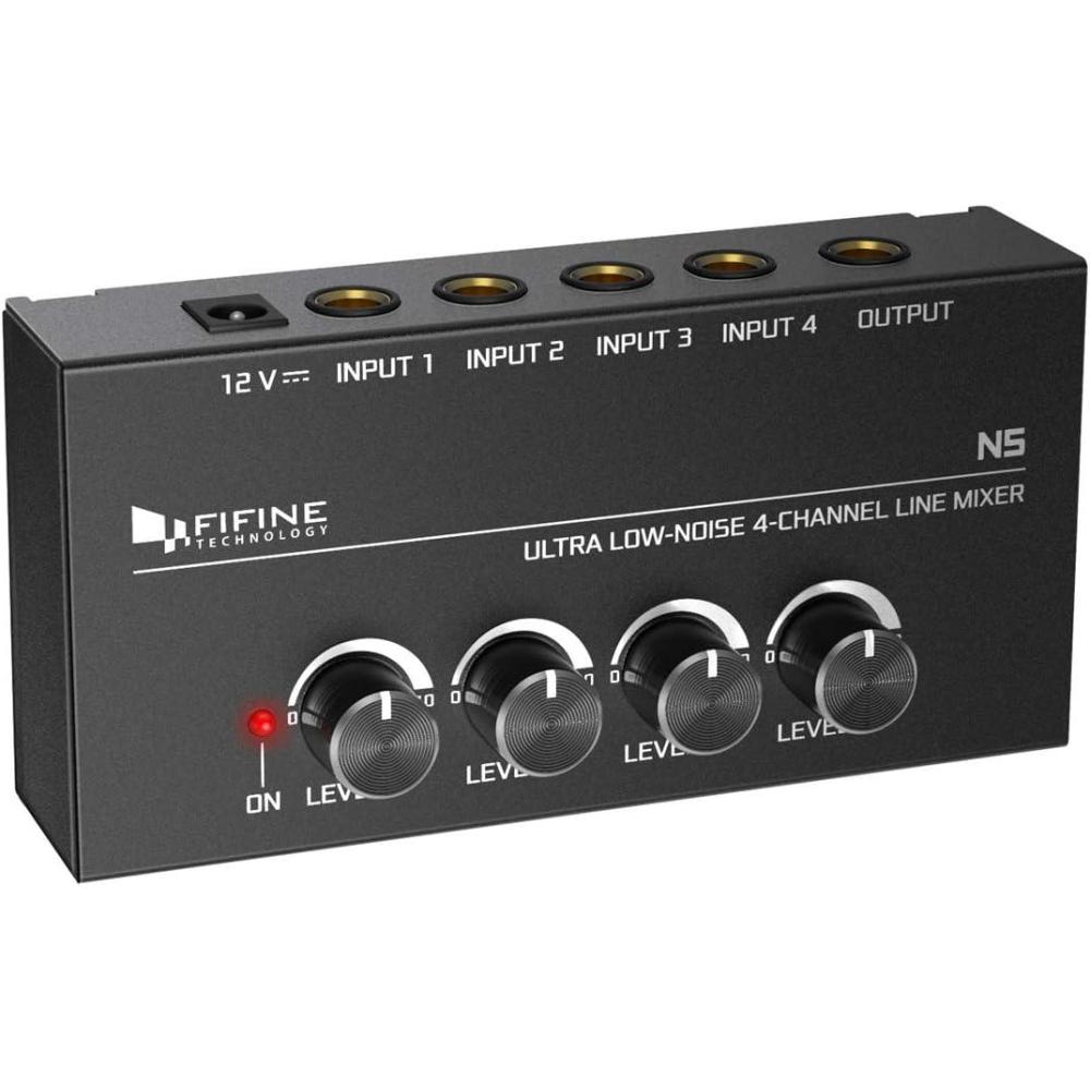 Score big on FIFINE Ultra Low-Noise 4-Channel Line Mixer for Sub-Mixing,4 Stereo Channel Mini Audio Mixer with AC adapter.Ideal for Small Club or Bar. As Microphones,Guitars,Bass,Keyboards or Stage Sub Mixer-N5 and accessories during our BOGO sale. Buy one, get one 50% off!
