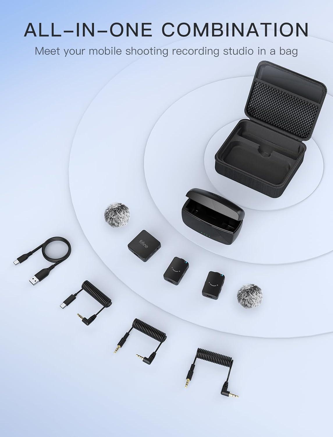 [Portable Perfection, Record Anywhere] The lapel microphone wireless set is friendly to your pocket or handbag , ready to go wherever you need it. No more struggling with bulky equipment, just clip wireless lav mic on the shirt collar, and start recording anytime, anywhere. You can freely make content creation on the move. The podcast wireless mic for iphone 15 is ideal for event videographers who need to be agile, moving from one shot to the next without awkward gear holding them back.