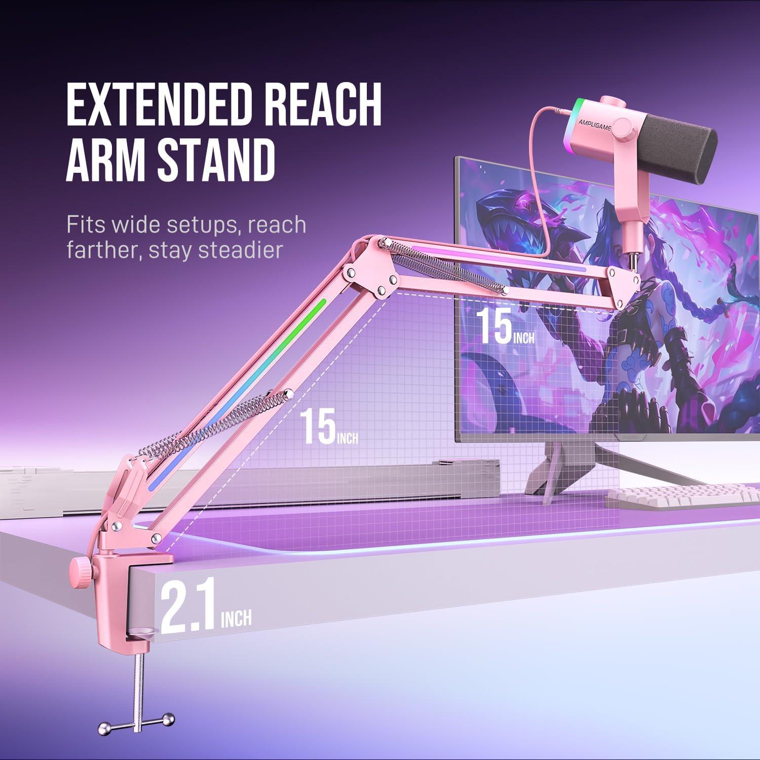 imageFIFINE XLRUSB Gaming Microphone Kit with Boom Arm Stand RGB Streaming Mic for Computer Compatible with PCPS4PS5 Podcast Mic Set with Headphone Jack Volume Knob MuteAmpliGame AM8PROT PinkPink
