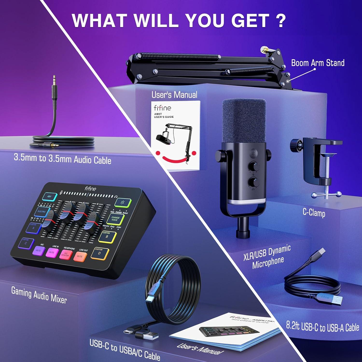 [Easy Use for More Scenes] The XLR microphone bundle designed specifically to meet the needs of gaming enthusiasts and streamers. Ideal for various applications, including gaming, streaming, podcasting, voice overs, and more. And the streamer setup mixer set features easy and intuitive audio port to support two PC settings or audio mixing, able to physically balance music, audio settings.