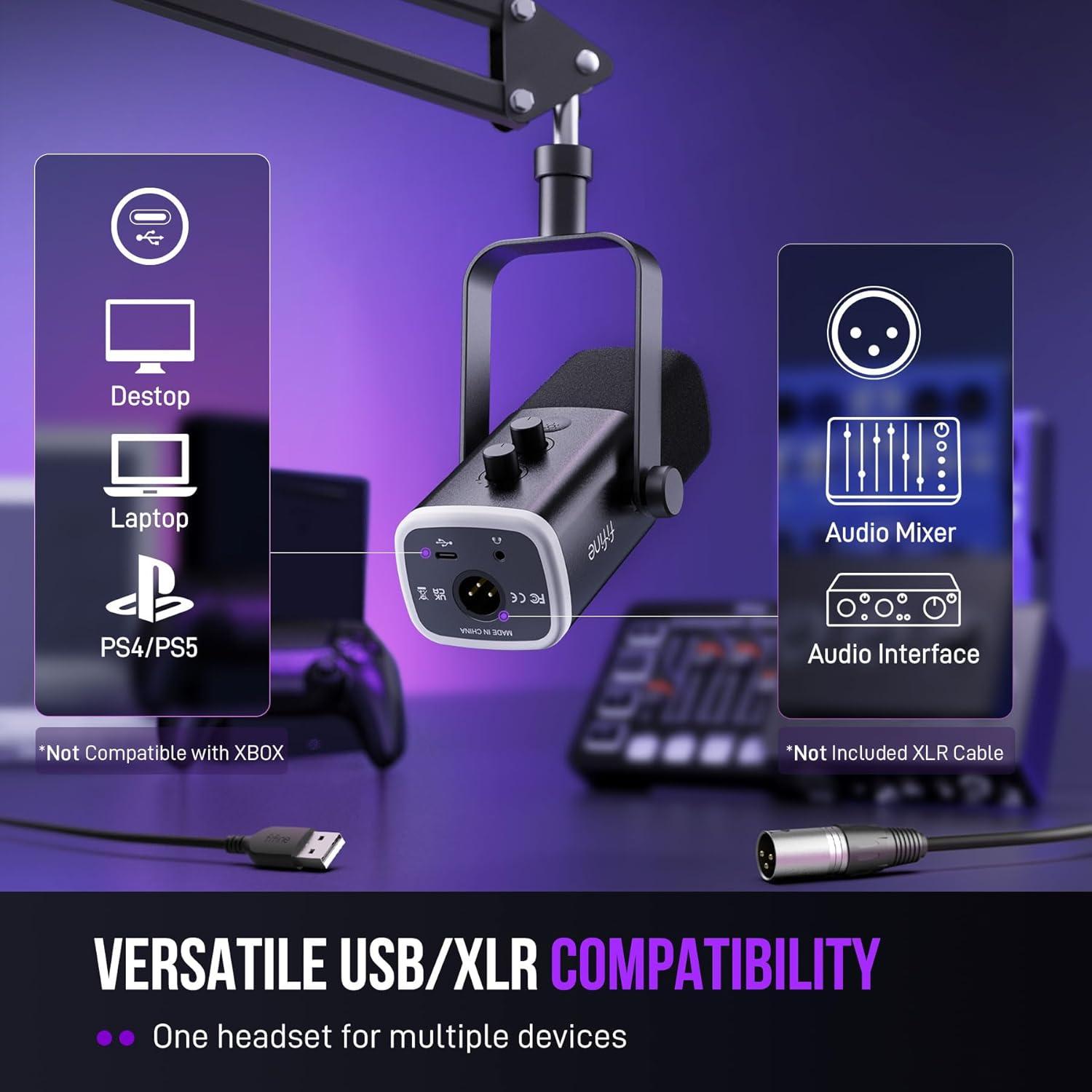 [USB/XLR Connectivity] AM8T comes with a dynamic microphone and a boom arm stand. Versatile PC gaming microphone kit with USB compatibility plug and play for PC in streaming or recording, without additional drivers. And also, while in XLR compatibility for mixer or sound card connection, the XLR studio vocal microphone is good at vocal, podcast, or musical instruments creation.