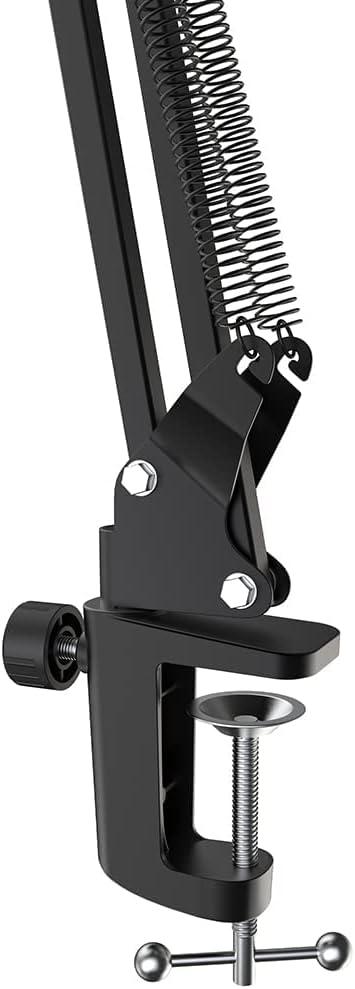 STURDY METAL MATERIAL-Made of sturdy metal, the mic arm stand is attached with strong and elastic springs to upgrade the stability and durability of the suspension arm stand. When you unintentionally hit the desk while adjusting the arm or playing games, the stand will not shake strongly. The boom arm gives you more stable whether adjusting position, angle of arm stand or carrying and moving microphone.